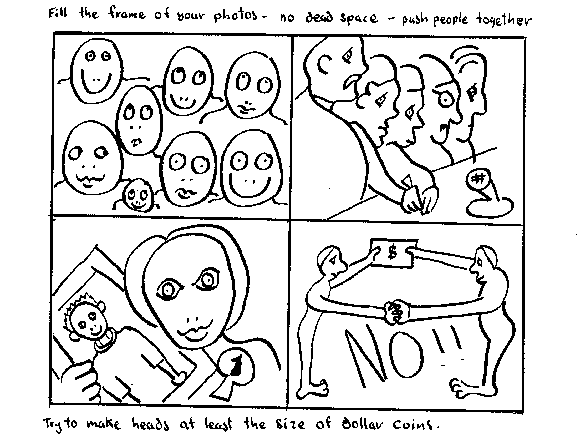 Photographs are very important in grassroots newsletters. In the first place, it makes them much more visually interesting. Also photocopied black/white photgraphs can be of suprisingly high quality. We also scan color photos. Grassroots newsletters often reunite group members who haven't seen each other for a while, or who are separated by distance, and photos make for a much more personal contact.